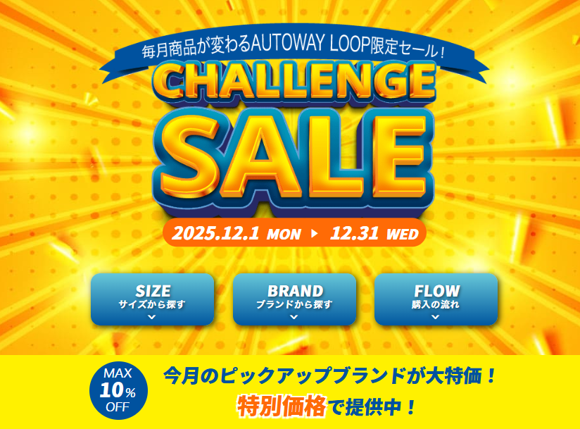 AUTOWAYでは、月替りでセールを行っているので、欲しいタイヤサイズが合えば、お得に購入することができます。