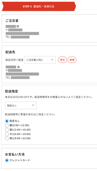 ステップ2:注文・支払い